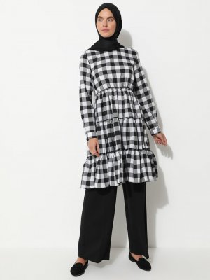 Ziwoman Siyah Kare Desenli Tunik