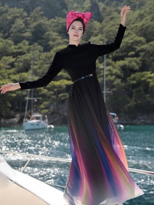 Feiza Collection Siyah Gökkuşağı Abiye Elbise