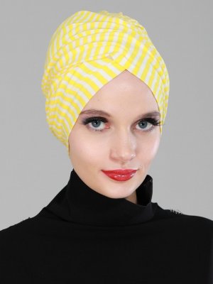 Ayşe Türban Tasarım Sarı Çizgili Penye Bone