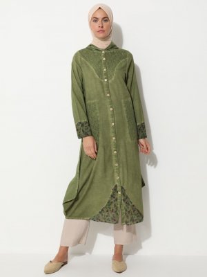 Çıkrıkçı Yeşil Açık Şile Bezi Boydan Düğmeli Tunik