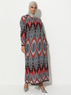Mileny Gri Desenli Elbise
