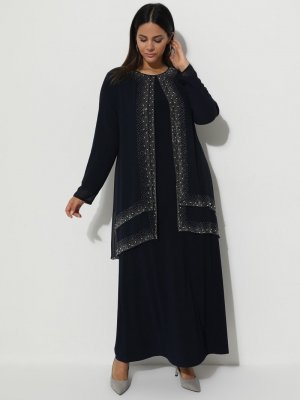 Havva Ana Lacivert Drop Baskılı Abiye Elbise