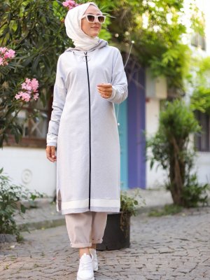 Tofisa Gri Kapüşonlu Hırka