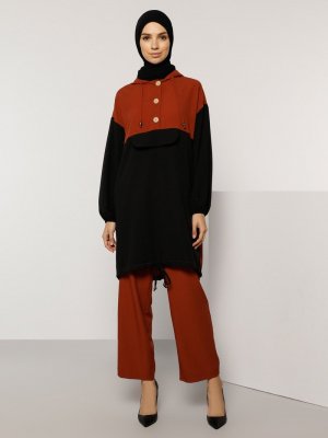 Tavin Kiremit Siyah Tunik&Pantolon İkili Takım