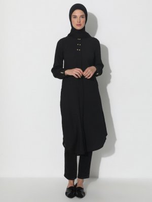 Elfida Siyah Düğme Detaylı Tunik
