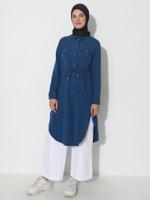 Elfida İndigo Beli Bağcıklı Düğmeli Tunik