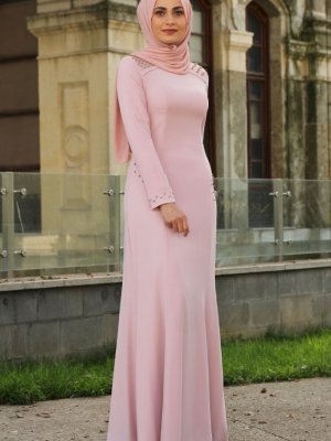 Feiza Collection Pudra İnci Detaylı Abiye Elbise