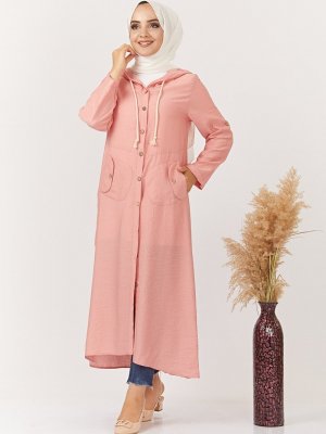 SAHRA BUTİK Gül Kurusu Kapüşonlu Kap