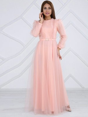 Lady Huri Somon Simli Fırfır Detaylı Tüllü Abiye Elbise