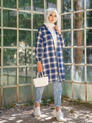 Tofisa Mavi Boydan Düğmeli Kareli Tunik