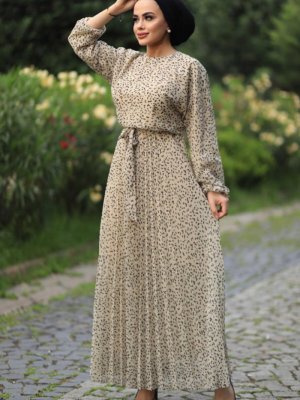 Feiza Collection Krem Desenli Elbise
