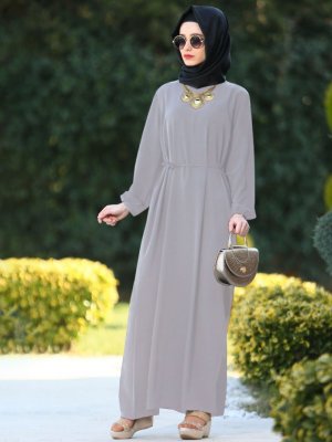 Merve Aydın Vizon Beli Bağcıklı Elbise