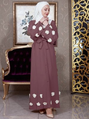 İz Otantik Mürdüm Çiçek Detaylı Çıtçıtlı Ferace