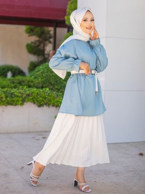 Tofisa Bebe Mavi Beli Lastikli Tunik