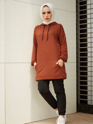 Festmoda Kiremit Set Baskılı Sweat Tunik