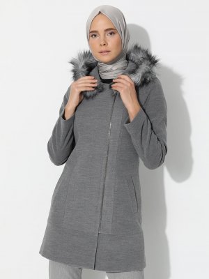 Concept By Olcay Gri Fermuarlı Kaban