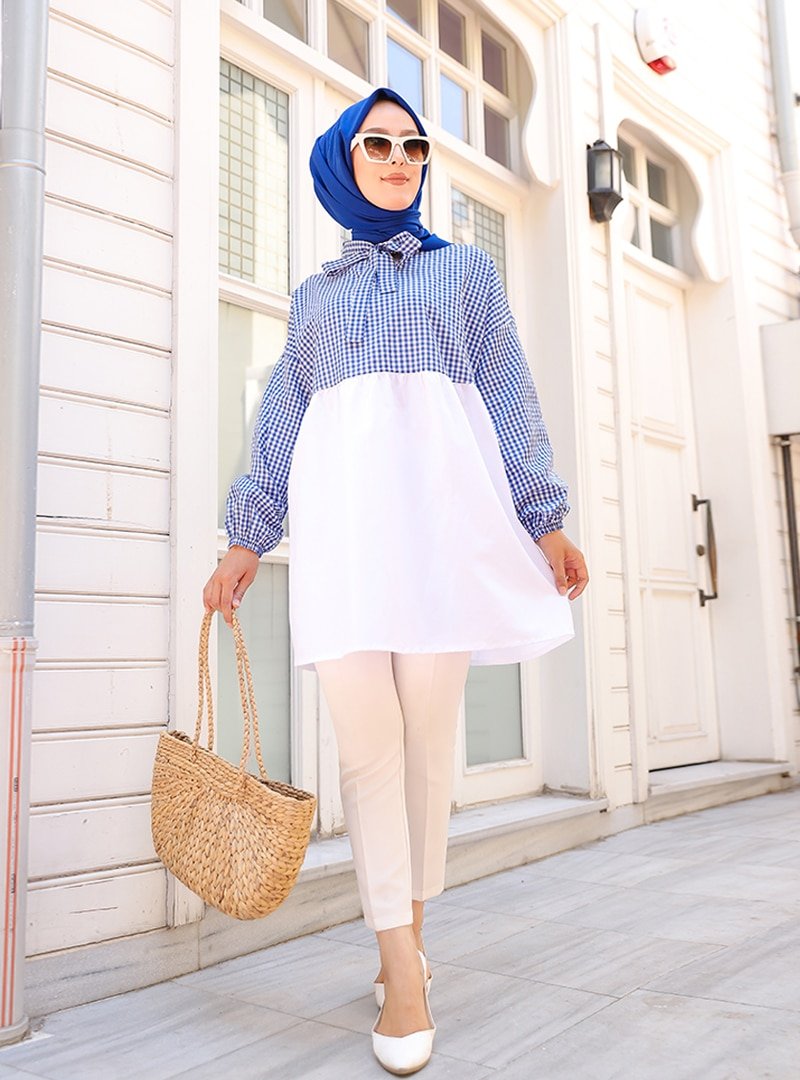 Tofisa Mavi Kareli Tunik