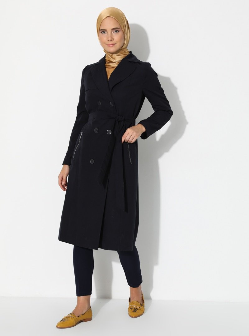 Concept By Olcay Lacivert Düğmeli Trençkot