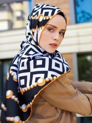 Şal Evi Mavi Renkli Sarı İnci Eşarp