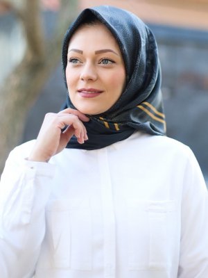 Guzz Siyah Desenli Twill Eşarp