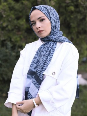 Guzz İndigo Desenli Pamuk Şal