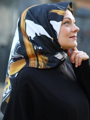 Guzz Siyah Desenli Twill Eşarp