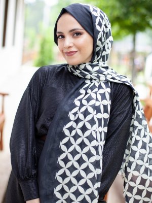 Guzz Siyah Geometrik Desen Pamuk Şal