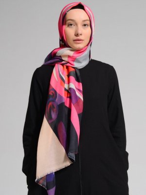 Guzz Leylak Soyut Desen Pamuk Şal