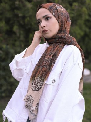 Guzz Kahverengi Desenli Pamuk Şal