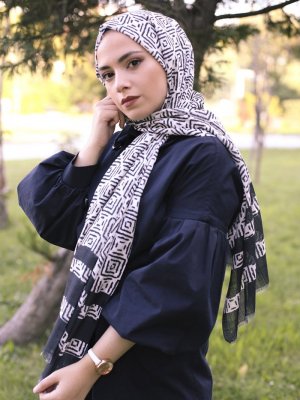 Guzz Siyah Desenli Pamuk Şal