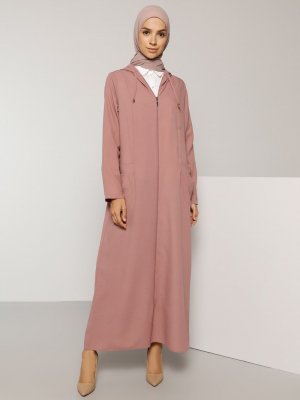 Tavin Gül Kurusu Kapüşonlu Cep Detaylı Ferace