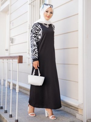 Tofisa Siyah Zebra Desenli Elbise