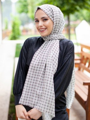 Guzz Krem Yonca Desen Pamuk Şal
