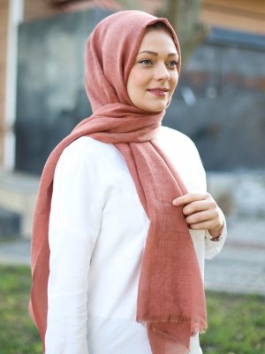 Guzz Kiremit Taşlanmış Pamuk Keten Şal