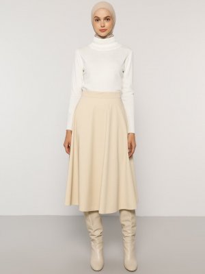 Benin Ekru Gizli Cepli Etek
