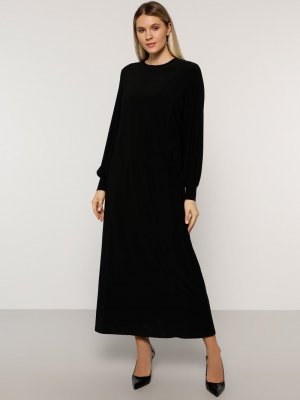 Alia Siyah Beli Büzgü Detaylı Elbise