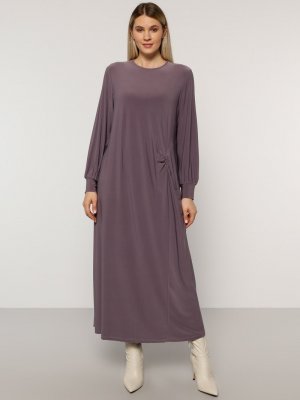 Alia Lila Toz Beli Büzgü Detaylı Elbise