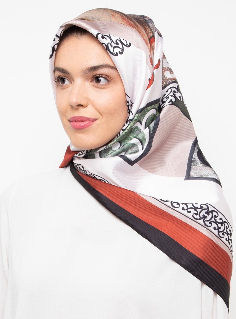 Burden İpek Kiremit Çini Desenli Eşarp