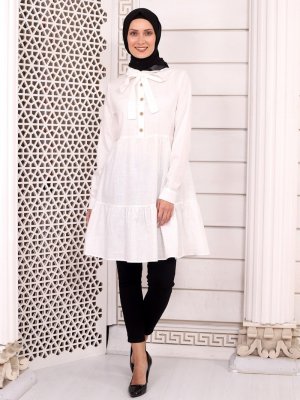 Pink Lady`s Beyaz Kurdele Detaylı Tunik