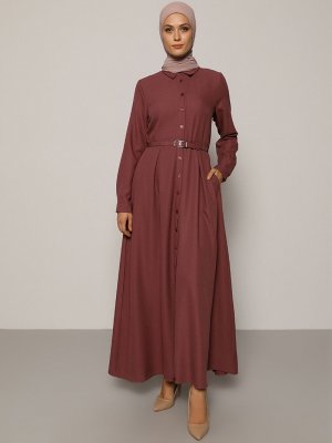 Refka Gül Kurusu A Pile Detaylı Kemerli Elbise