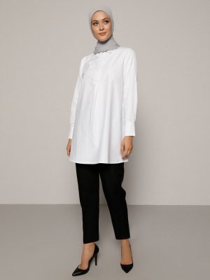 Refka Beyaz Düğme Detaylı Tunik