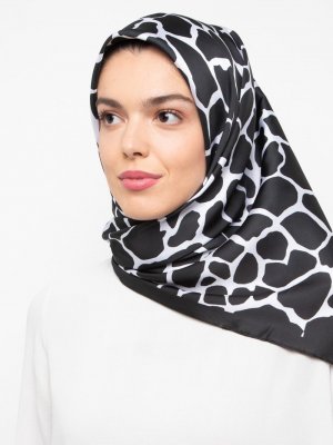 Burden İpek Siyah Beyaz Desenli Eşarp