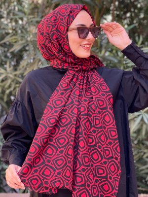 Mirach Bordo Siyah Desenli Şal