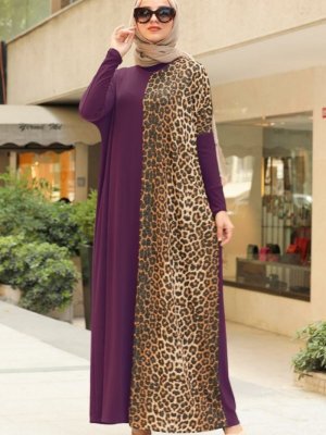 Neva Style Mor Leopar Desenli Elbise