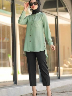 Neva Style Mint Uzun Kollu Tunik
