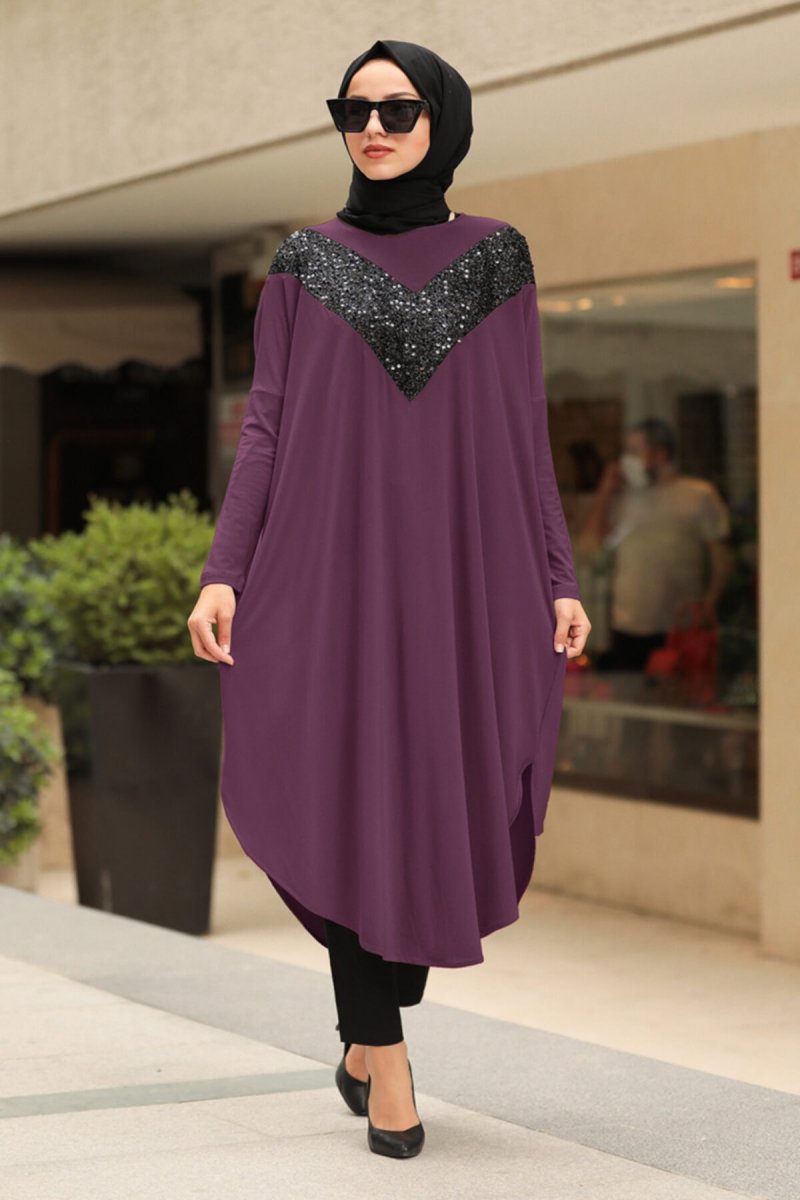 Neva Style Mor Pul Detaylı Tunik
