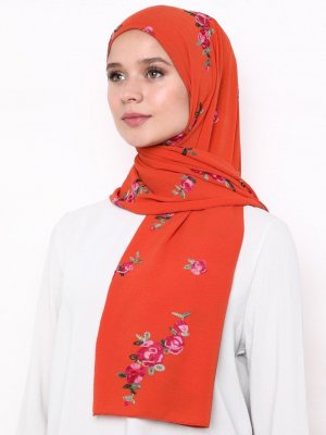 Les Bonnes Kiremit Çiçek Desenli Şal