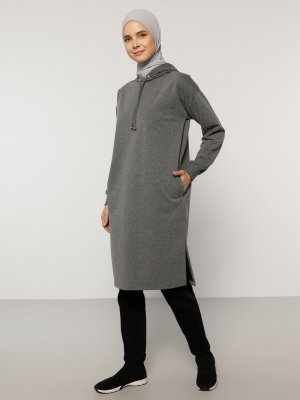Everyday Basic Antrasit Melanj Yanları Yırtmaçlı Sweatshirt
