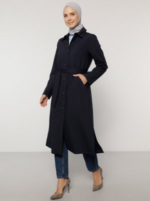 Tavin Lacivert Kuşak Detaylı Trençkot