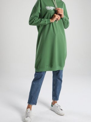 Allday Yeşil Baskılı Sweat Tunik